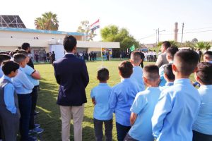 حضرا رئيس الوزراء المحترم في مراسم رفع العلم وقراءة سورة الفاتحة على أرواح شهداء العراق، بحضور السيد وزير التربية، ثم دققنا جرس المدرسة للإعلان عن انطلاق العام الدراسي الجديد 2025- 2026، وشهدنا مراسم رفع العلم.
